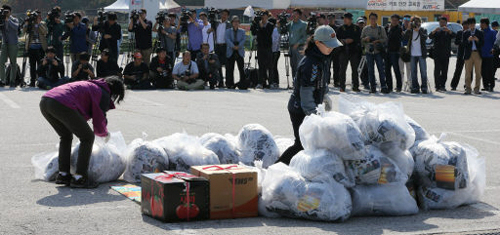 결국 이곳 주민들이 직접 외부인의 전단 살포를 막기 위해 나섰다. 급기야 주민들은 11일 오전부터 탈북자 단체들이 풍선을 날려온 장소인 중면 돌무지 무덤과 합수리 능골 주차장으로 들어가는 길을 트럭, 트랙터 등으로 막았다. 또 전단 살포를 하려는 외지인들의 출입을 직접 살피며 감시활동을 폈다. 임재관 중면 면장은 “탈북 단체의 풍선 가스 충전용 차량이 못 들어오게 막은 것”이라고 설명했다.