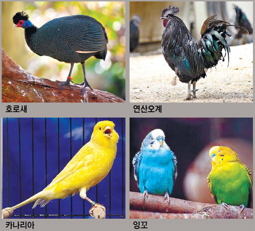앵무새와 구관조는 훈련을 통해 많은 단어와 사람 목소리에 가까운 소리를 내는 장점을 보유하고 있다. 꿩과에 속하는 금계, 은계, 백한은 다른 관상용 조류에 비해 덩치가 크면서도 아름다운 깃털로 인기가 많다. 금계는 옛날 궁궐에서 재앙을 예방하기 위한 용도로 길렀으며 왕이나 귀족들 간에 선물용으로도 쓰였다. 은계는 은백색 바탕에 청색의 대비가 무척 잘 어울리며, 백한은 체질이 강인해 사냥용 새로도 길러졌다.