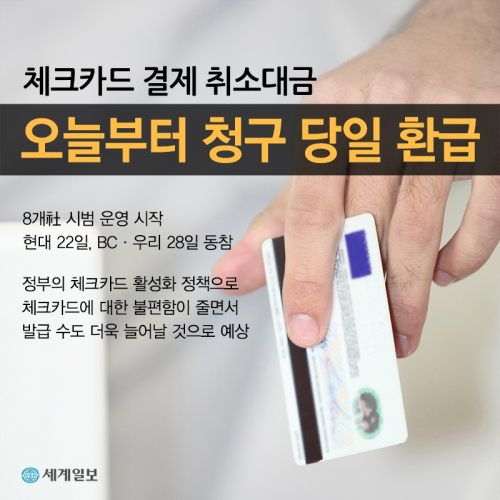 앞서 카드업계는 지난 4월부터 카드사별로 체크카드 '결제 취소 시 다음날 환급'을 시행하기로 한 바 있다.