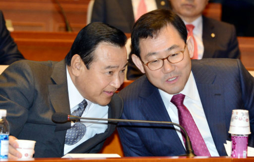 | 새누리당 주호영 정책위의장이 3일 오전 국회에서 열린 의원총회에서 “국회 선진화법에 대한 권한 쟁의 심판을 청구하기로 했다”고 밝히고 있다. 이재문 기자 |