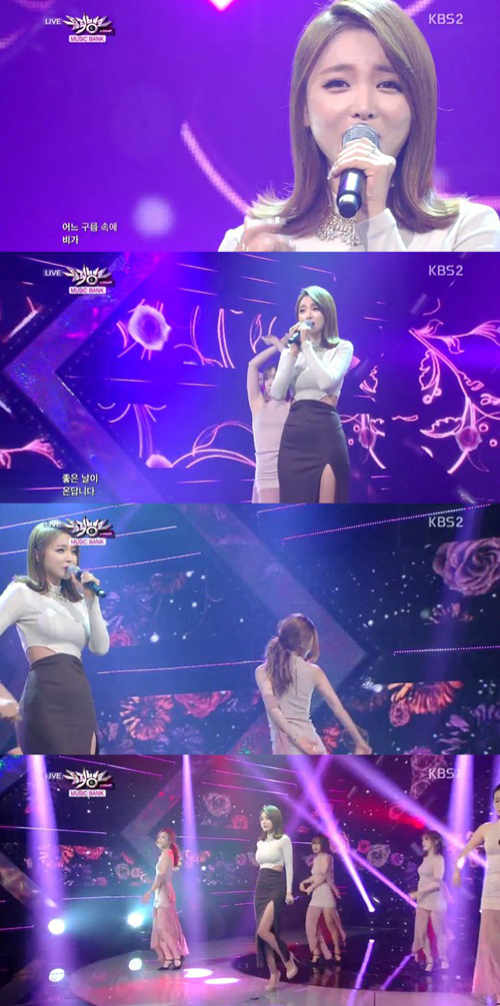 홍진영은 14일 오후 서울 여의도 KBS 신관 공개홀에서 생방송으로 진행된 KBS 2TV 가요프로그램 '뮤직뱅크'에 출연,첫 미니앨범 '인생노트(Life Note)'의 타이틀곡 '산다는건' 무대를 선보였다.