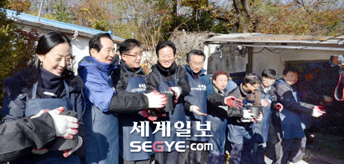 봉사의 기쁨을 알려주기 위해 딸을 데려왔다는 문 이사장은 “힘들고 어려운 분들이라도 추위 걱정 없이 겨울을 보내는 그런 날들이 빨리 오길 소망해 본다”며 자원봉사자를 격려했다. 정 의원은 “서울 도심에서 가까운 곳에도 힘들고 어려운 가구들이 많다”며 “(지역구인) 종로구의 어려운 어르신들에게 사랑의 연탄을 배달하는 봉사자 여러분에게 고마운 마음을 표한다”고 밝혔다. 조 사장은 “우리의 작은 노력으로 겨울을 그나마 따뜻하게 보낼 분들을 생각하니 행복하다”고 말했다.