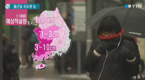기상청 관계자는 "예상되는 강수량이 많지가 않다"며 "강수량이 10㎜로 예상되더라도 적설량은 10㎝에 불과해 서울·경기 지역은 1㎝ 미만의 적설량을 기록할 것"이라고 말했다.