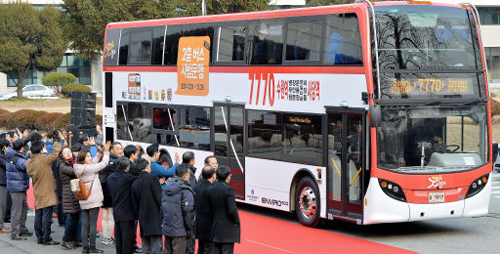 경기도는 이날 오전 7시부터 수원역에서 서울 사당역(25㎞ 구간)을 오가는 광역버스 7770번 노선에 79인승 2층 버스 한 대를 투입했다. 2층 버스는 영국 알렉산더 데니스사에서 만든 ‘엔바이로(Enviro) 500’ 모델로 높이가 4.15m, 길이는 12.86m, 폭 2.55m이다.