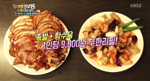12월 31일 오후 방송된 KBS 교양프로그램 '생생정보통'의 '그 맛이 알고 싶다' 코너에서 족발 탕수육 무한리필 맛집이 소개됐다.