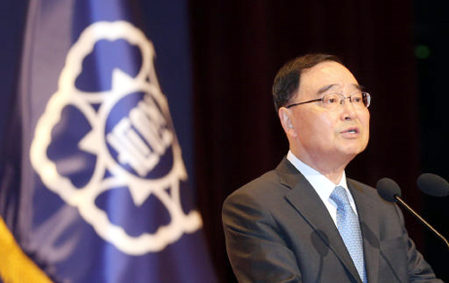 | 정홍원 국무총리가 2일 오전 정부세종청사 대강당에서 열린 2015 정부시무식에서 정부부처 장관과 공무원 등을 대상으로 신년사를 밝히고 있다. |