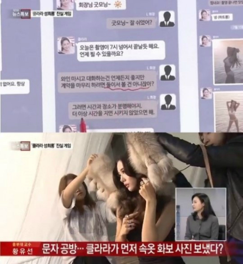 19일 연예매체 '디스패치'는 클라라의 '성적 수치심' 발언으로 논란이 된 소속사 대표 이 모 회장과 클라라의 문자 내용을 보도했다.