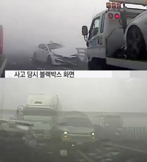 이 영상에는 안개가 짙게 끼어 전방주시가 거의 안 되는 상황에서 차량 석 대가 잇따라 부딪치는 모습, 버스에 부딪치는 모습 등 급박했던 연쇄추돌 당시 상황이 담겼다.