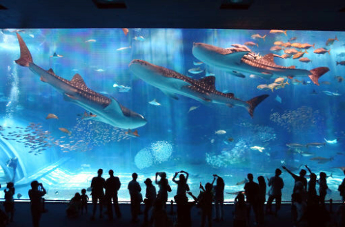 오키나와 해양엑스포공원 내에 있는 추라우미 수족관에는 365일 전 세계 관광객들의 발길이 끊이지 않는다. 요즘 인기가 많은 추성훈·추사랑 부녀도 이곳을 다녀가는 모습이 전파를 타면서 국내에서 화제를 모았다. ‘맑은 바다’란 뜻의 추라우미 수족관 입구에는 얕은 바다를 재현해 직접 해양생물들을 손으로 만져볼 수 있는 체험코너가 관람객들을 반긴다.
