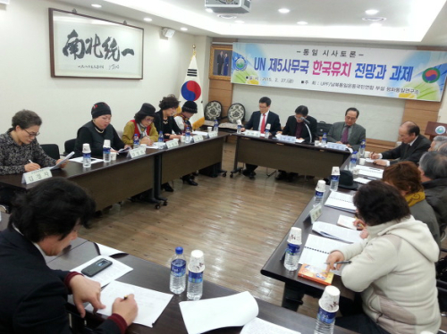 | 남북통일운동국민연합 부설 평화통일연구소 주최 ‘제5 유엔사무국 한국 DMZ 유치 첫 민간토론회’ 모습. |
