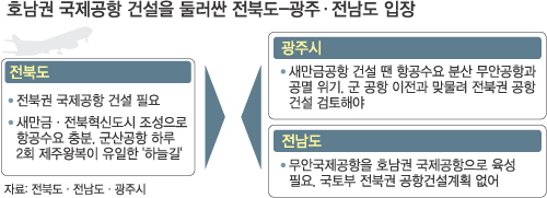 광주시의 한 관계자는 “호남권의 항공수요를 감안하면 무안국제공항으로 충분하다”며 “호남권이 국제공항 건설을 놓고 상생해야 할 시기”라고 말했다.