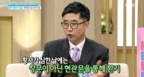 특히 김수영 교수는 황사가 심한 날에는 창문이 아닌 현관문을 통해 환기를 시켜줘야 한다 고 조언했다 .