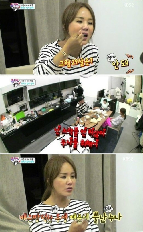 "26살 남자도 괜찮겠느냐"는 누나 엄정화의 물음에 엄태웅은 안 된다고 단호히 답했다. 이에 엄정화가 "29살은?"이라고 다시 묻자 엄태웅은 "절대 안 돼"라고 말했다.