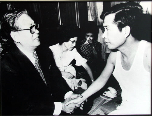 | 1973년 8월14일 일본에서 납치됐다 생환한 김대중 전 대통령을 정일형 박사(왼쪽)가 동교동 자택을 찾아 위로하고 있다. 정일형·이태영박사 기념사업회 제공 |