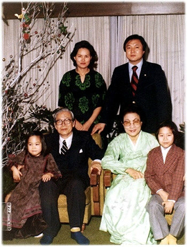 | 정일형 박사(앞줄 왼쪽 두번째)의 가족사진. 부인인 이태영 박사(〃 세번째)와 아들인 새정치민주연합 정대철 상임고문(뒷줄 오른쪽), 손자인 정호준 국회의원(오른쪽). 정일형·이태영박사 기념사업회 제공 |