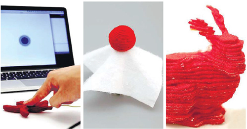 말랑한 인형도 만드는 3D 프린터 美서 개발 입력 : 2015-04-19 22:45:28 수정 : 2015-04-19 23:33:30 구글 네이버 유튜브 미국 디즈니 연구소가 18일(현지시간) 3차원(3D) 프린터 터치 센서와 펠트를 가공해 만든 인형(왼쪽부터)을 홈페이지에 공개했다. 플라스틱이나 금속 등을 써 딱딱한 물체를 생산하는 일반 3D 프린터와 달리 양모 등을 압축해 만든 부드럽고 두꺼운 천인 펠트를 이용한 만큼 물렁물렁한 물체를 만들 수 있는 점이 이 3D 프린터의 특징이라고 연구소 측은 설명했다. 디즈니 연구소 제공 Copyright ⓒ 세계일보. 무단 전재 및 재배포 금지 세계일보 황계식