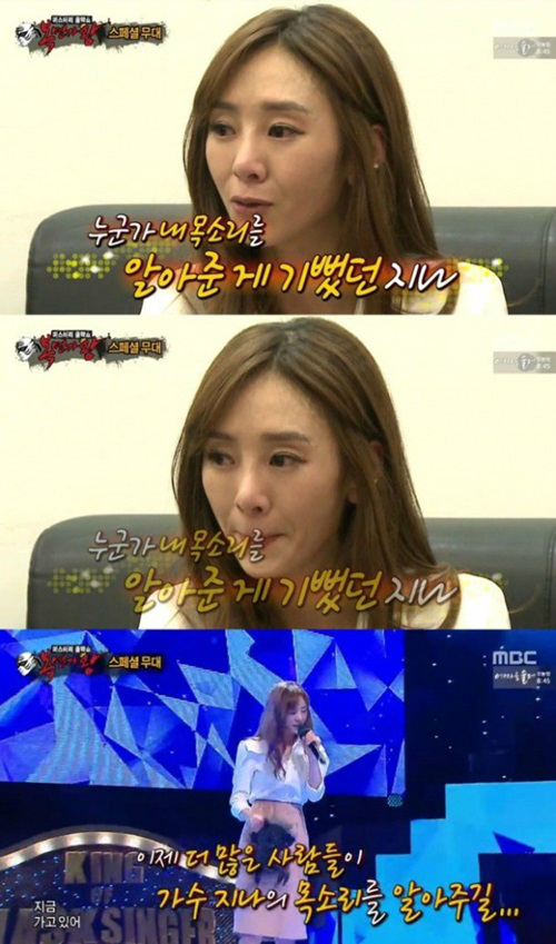 이날 ‘복면가왕’에서 지나는 가수 J의 ‘어제처럼’을 열창했다. 이에 판정단 백지영은“이 목소리는 지나다. 지나는 고음을 낼 때 얇은 바이브레이션을 내는데 똑같은 것 같다”라며 분석했다.
