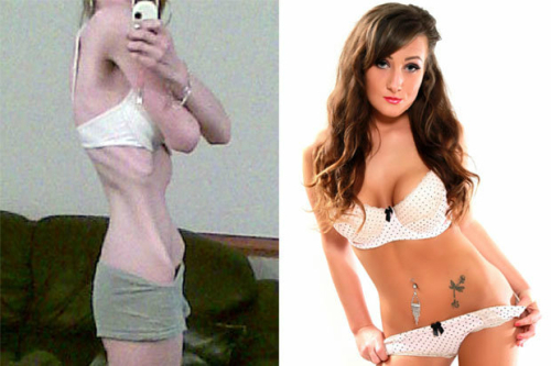 | 거식증 치료 전과 후. 완치 후 건강해진 모습이 매력적이다. |
