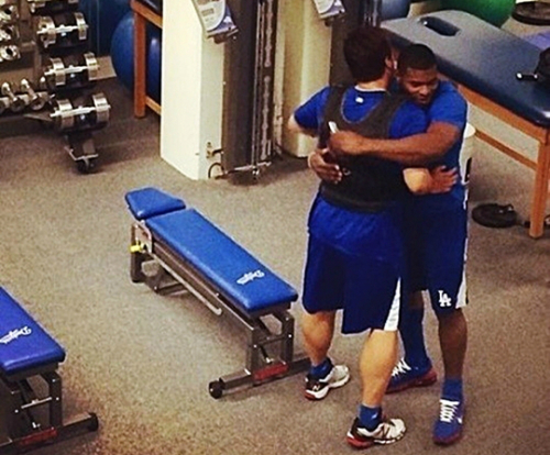 | 류현진 데드암 증상 의심 (사진= 류현진과 야시엘 푸이그 / 류현진 전담통역사 마틴 김 인스타그램) |