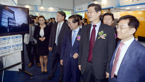 12일 서울 중구 서울시청 시민청에서 열린 ‘2015 신문·뉴미디어 엑스포’ 개막식에서 차준영 세계일보 사장과 송필호 한국신문협회 회장, 박원순 서울시장(오른쪽부터) 등이 세계일보 부스를 둘러보고 있다. 15일까지 나흘 동안 열리는 이번 행사에는 세계일보 등 신문협회 17개 회원사와 2개 유관단체(한국신문잉크·한국언론진흥재단)가 참여해 자사 지면의 특징과 발전 방향 등을 소개한다.