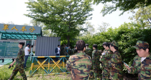 예비군 훈련장 총기사고가 발생한 13일 서울 내곡동 52사단 예비군 훈련장에서 총기사고로 인해 훈련을 받지 못한 예비군들이 훈련에 참석했다는 군측의 확인을 받고 돌아가고 있다. 이제원 기자 |