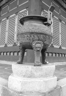 | 경운궁(덕수궁) 정전인 중화전에 서 있는 솥의 모습. 한국, 중국, 일본에서 솥은 종종 왕권의 상징으로 인식되어 왔다. 눌와 제공 |