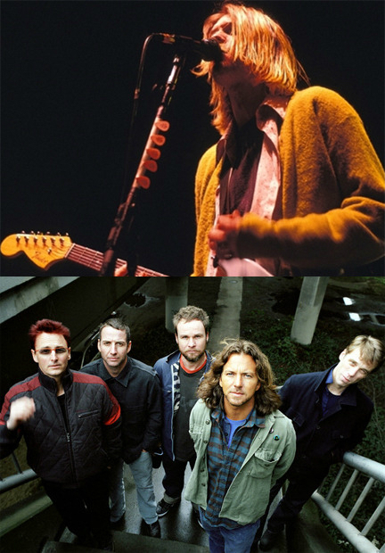 밴드 너바나(Nirvana)의 리드 싱어, 커트 코베인(Kurt Cobain)은 길고 헝클어진 머리카락에 물이 빠진 청바지, 헐렁한 체크 셔츠, 낡은 티셔츠 등을 입어, 물질 만능의 소비주의와 엘리트주의 사회를 사는 젊은이의 염세주의, 좌절 등을 음악과 함께 표출했다.