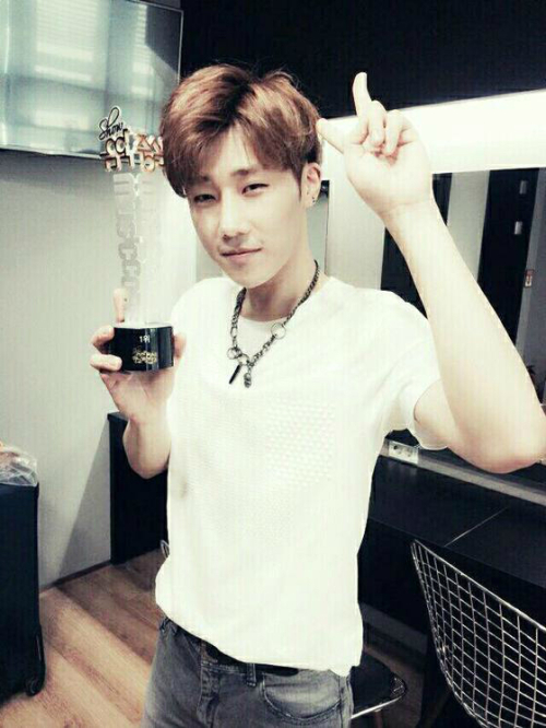 '쇼 음악중심 '에서 1위를 한 김성규가 인증샷을 공개해 이목을 끌고 있다 .
