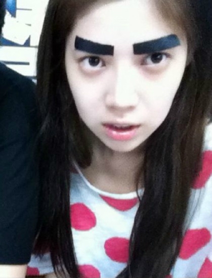 사진 속에서 배다해는 눈썹 부분에 검은 테이프를 붙인 채 화를 내는 듯한 표정을 짓고 있어 '앵그리버드' 게임 캐릭터를 연상케 한다.