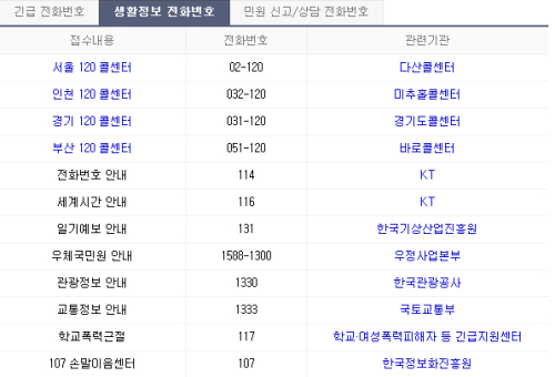 ” “생활정보 전화번호