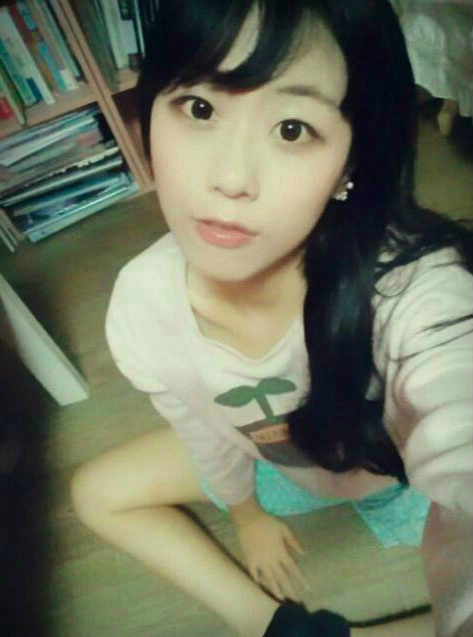 이세진은 깜찍한 얼굴에 섹시한 자태를 뽐내며 바닥에 다리를 벌리고 앉아 셀카를 찍고 있다.