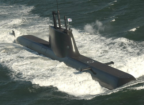 | 우리 해군의 잠수함이 물살을 시원하게 가르며 힘차게 앞으로 나아가고 있다. 세계일보 자료사진 |