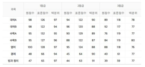 | 모의고사 등급컷 영어 100점, 이투스 제공 |