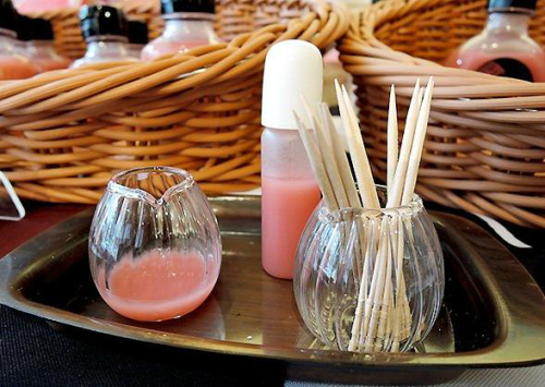 | 세계 최초로 개발된 핑크색 간장. 조명 탓에 오렌지 색으로 보이지만 핑크색이다. |