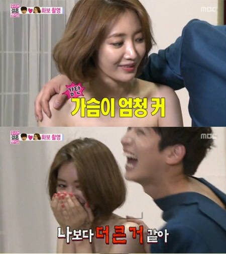 정진운은 상의를 탈의한 채 화보를 촬영했고 운동으로 가꾼 탄탄한 몸이 드러났다. 이에 고준희는 사진을 확인하던 중 정진운의 가슴 근육을 보며 “가슴이 엄청 크다. 나보다 더 큰 것 같다”며 웃음을 자아냈다.