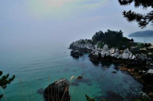 | 거센 바닷바람과 파도가 석회암절벽을 다듬어 추암해변 촛대바위의 절경을 만들었다. 자연이 만든 회색빛 조각품이 푸른 바다와 어우러지는 모습은 장관이다. |