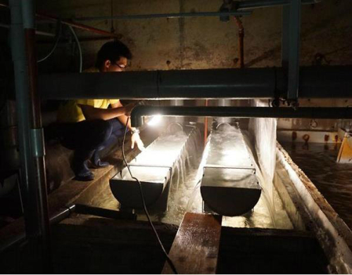 | 금붕어가 발견된 정화조. 피라루쿠의 먹이 찌꺼기와 청소 때 산소가 공급돼 금붕어가 살 수 있었다. |