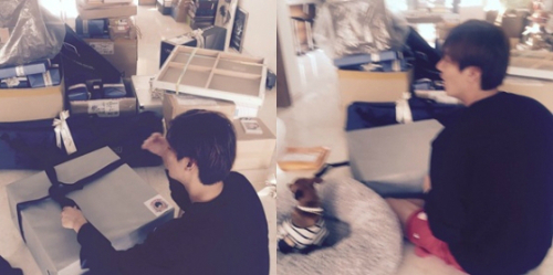 공개된 사진 속 이민호는 거실을 한가득 메운 생일선물 상자를 하나씩 열어보고 있다. 살짝 흔들린 사진에서도 이민호는 뚜렷한 이목구비로 멋진 외모를 숨길 수가 없다. 검은색 상의를 입은 이민호의 넓은 어깨 역시 여심을 흔들었다.