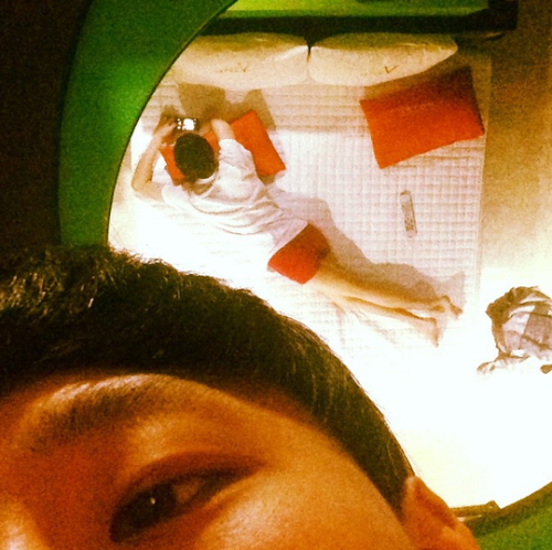 공개된 사진 속 블랙넛은 지방 공연 행사 중 모텔에서 엎드려 셀카를 찍었고 샤워실에 간 기리보이를 기다리고 있다고 전했다