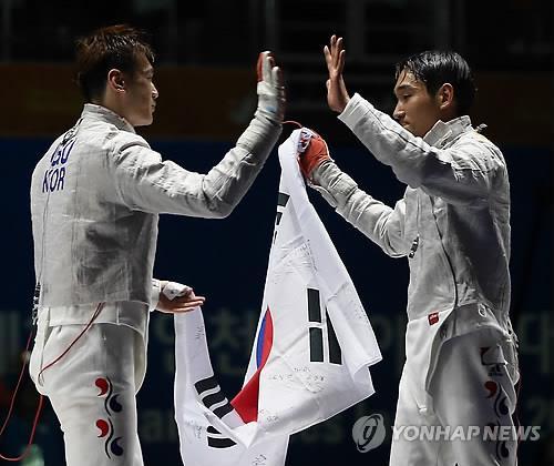 전날까지 은메달 3개에 동메달 2개만 가져왔던 한국 대표팀은 남자 사브르와 여자 플뢰레 대표팀의 맹활약으로 이날 시상대를 휩쓸면서 분위기 반전에 성공했다.