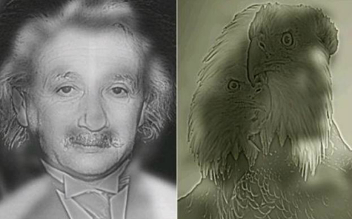 테스트에 따르면 정상인 사람도 멀리 떨어져서 눈을 거의 감은 채 사진을 보면 마릴린 먼로의 모습을 볼 수 있으며, 안경을 쓴 사람은 안경을 벗고 보면 아인슈타인이 마릴린 먼로로 보이게 된다.
