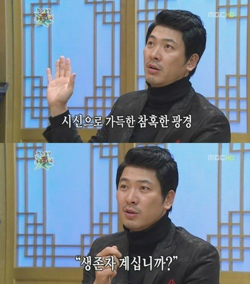김상경은 "무서운 곳에 들어갔더니 샌드위치처럼 눌려 있었다. 들어가서 봤는데 마네킹인 줄 알았다. 구석구석 팔과 다리가 보였다. 마네킹이 그런가보다 했는데 그게 다 시신들이었던거다. 전부 시신이었다"며 "수습할 수가 없다. 들 수가 없는 상황이다. 처음 할 때 생존자가 나왔는데 기계들이 못 들어가는 상황에서 한명이라도 더 구해야했다"고 덧붙였다.