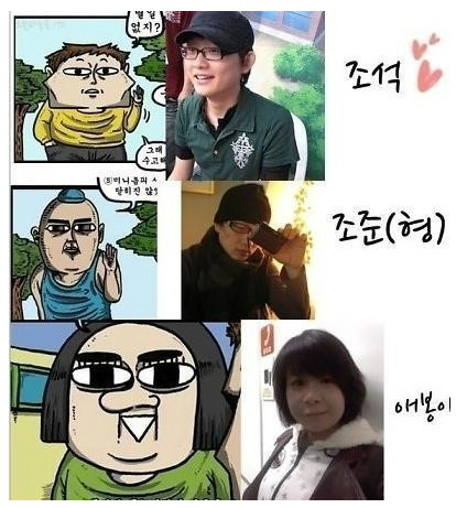 과거 한 온라인 커뮤니티 게시판에 네이버에 연재 중인 웹툰 '마음의 소리' 속 캐릭터와 실제 인물을 비교한 사진이 올라왔다.
