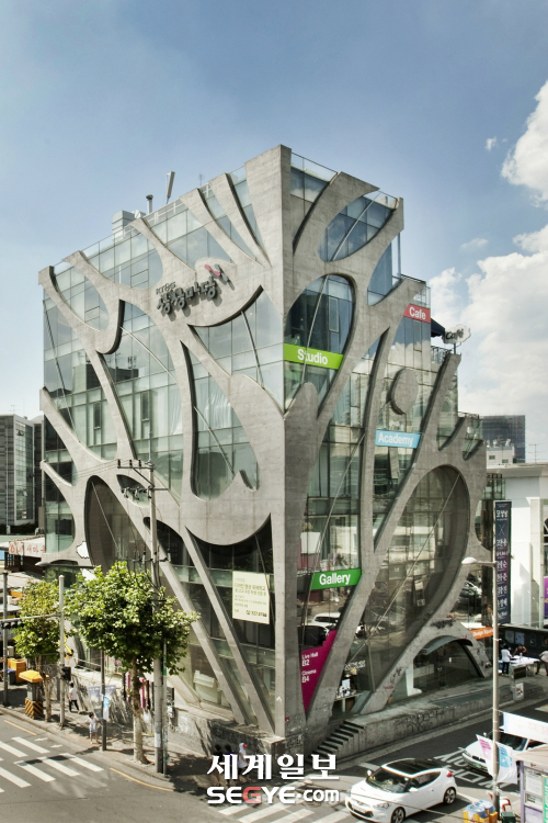 비가 온 다음날 지난 주말 28일, 서울 마포구 서교동에 위치한 KT&G 상상마당을 찾았다. 지하철 2호선 홍대입구역에서 내려 9번 출구로 나와 약 10분 정도 걸어가니 지상 7층의 특이한 형태의 건물이 나를 반겼다. 계단형의 건물이 한 눈에 딱 들어오는 것이 바로 ‘KT&G 상상마당’이구나 하고 바로 알아 차릴 수 있었다. 건물 안으로 들어서서 안내판을 보니 지상은 갤러리, 아카데미, 스튜디오, 카페 등이 있으며, 지하 공간 1~2층은 공연장, 3~4층은 영화관으로 이루어져 있다. 2층에 위치한 갤러리에서는 ‘레이먼 사비냑’의 대표작들을 전시 중이었다.