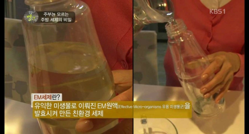 따라서 EM원액과 쌀뜨물을 섞어 발효시킨 세제야말로 건강과 환경을 모두 지켜 줄 만한 친환경 세제. 원액 한 통 구입하면 3~4개월씩 사용할 수 있어 경제적인 면에서도 우수. 발효하는 데 일주일 정도 시간이 소요되기 때문에 일정한 간격을 두고 여러 통 만들어 회전시킨다.