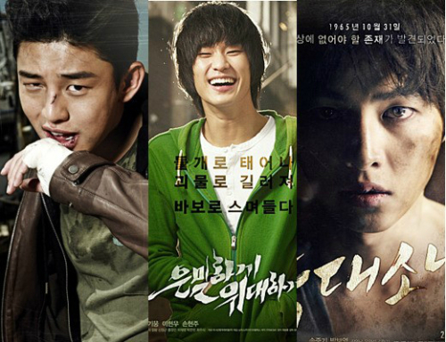 | `베테랑` 유아인, "송중기-김수현 외모 비교하는 댓글에 화가 났다" (사진= `깡철이`, `은밀하게 위대하게`, `늑대소년` 공식 포스터) |