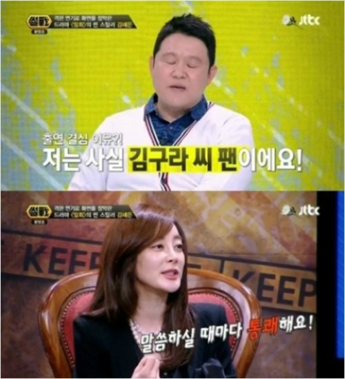 이날 김혜은은 썰전에서 "김구라가 직설적으로 말할 때도 있지만 솔직함을 좋아한다"며 "김구라가 말할 때마다 통쾌함을 느낀다"고 말했다. 이에 김구라는 쑥쓰러워하며 중저음의 목소리로 "고맙다"고 말했다.