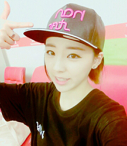 사진 속 별하는 한스타 여자연예인야구단 입단 선물로 받은 스냅백을 받고 CF모델처럼 밝은 미소로 짓고 있다.