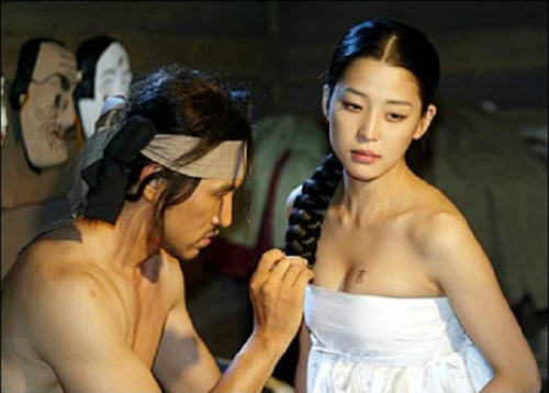 최근 한 온라인 커뮤니티 게시판에 10년 전 한고은의 드라마 속 파격 노출 장면이 담긴 사진이 공개됐다. 해당 게시물에는 한고은의 가슴에 유오성이 글자를 새기고 있다.