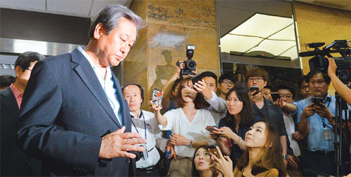 김 대표는 이날 ‘유 원내대표 거취와 관련해 전날 청와대와 연락을 했느냐’는 기자들의 질문에 “내가 무슨 맨날 청와대랑”이라며 발끈했다. 유 원내대표 거취를 청와대와 상의하거나 지침을 받아 결정한 것이 아니다고 강변한 것으로 풀이된다. 그러면서 유 원내대표 사퇴 권고안 채택은 ‘당을 위한 결단’임을 강조했다. 그는 결의안 채택과 관련해 “내가 총대를 메야지. 남 탓을 할 수도 없고 사람들(유 원내대표와 친박)이 타협도 하고 굽힐 줄도 알고 이래야 되는데…”라며 “참 자기 고집만 피우고. 똑같아”라고 말했다.